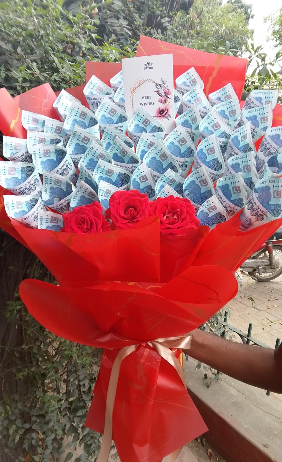 Surprise your loved ones with a luxurious 50K worth money bouquet, beautifully arranged with fresh currency notes and elegant wrapping. A perfect premium gift for weddings, birthdays, and special celebrations.